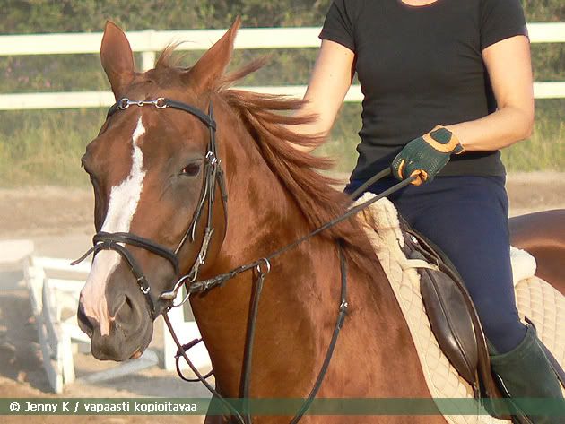 Luonne: Herkkä, kuuntelee yleensä ratsastajaa kiltisti. Ensimmäisellä ratsastuskerralla voi heittää selästä. Kulkee pää korkealla ja ylväästi. Ei anneta aloittelijalle.